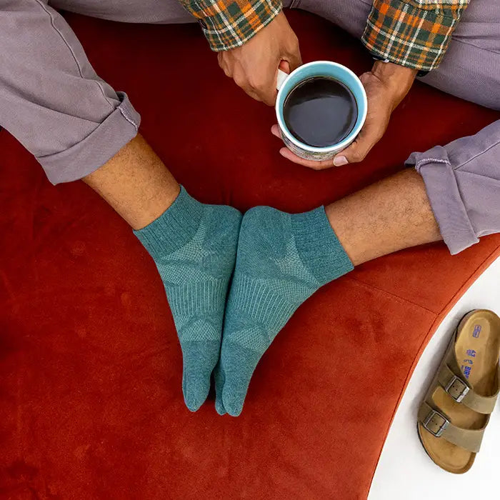 If you’re on the edge, we suggest going with the larger size! Getting a larger size allows your toes to move comfortably all day and is the best sock for in-between size feet.