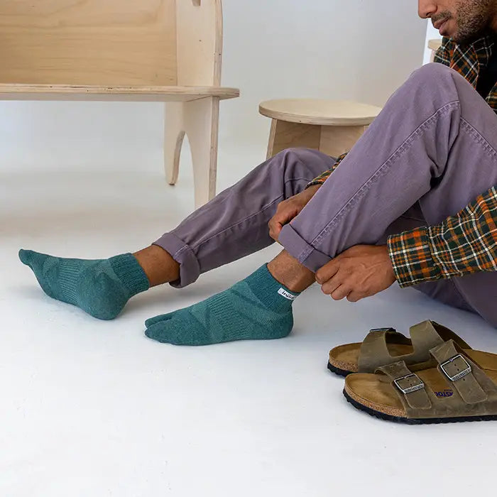 Separating the big toe from the rest, these socks create space for the straps of your favourite sandals, slides, clogs, or thongs.